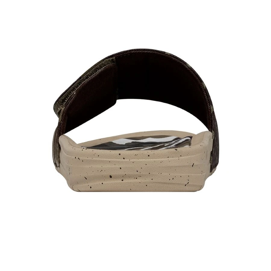 Bring a taste of nature to the party with Phoenix Camo slides. Their cotton upper strap is designed for pure comfort. Featuring a leather-lined foot bed and their lightweight outsole, which is like walking on air. Like the great outdoors, for your feet.