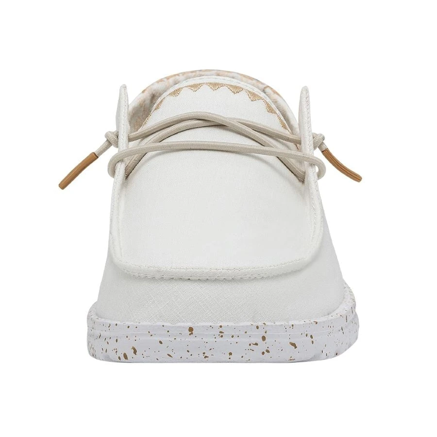 Our most popular moc meets soft chambray-cotton throughout. The Wendy Chambray collection embodies the Hey Dude lifestyle by combining our passion for comfort and quality. Created with a soft, chambray-blend upper, finished off with an easy-on, elastic lacing system and an ultralight outsole for extra comfort. This design is perfect for all day wear.
